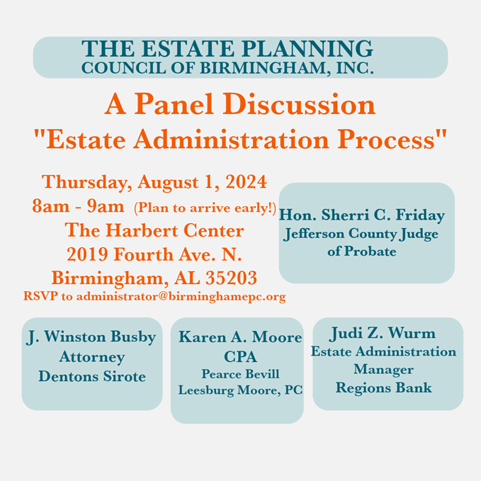 The Estate Planning Council of Birmingham presents a panel discussion: Estate Administration Process.