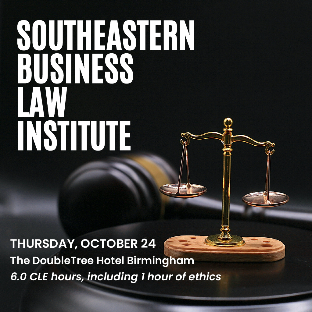 Cumberland School of Law Continuing Legal Education along with the Business Law & Corporate Counsel Section of the Alabama State Bar and the BBA Business Law Section present the annual Southeastern Business Law Institute. Thursday, October 24 | 8:00 am to 4:00 pm + Cocktail Reception