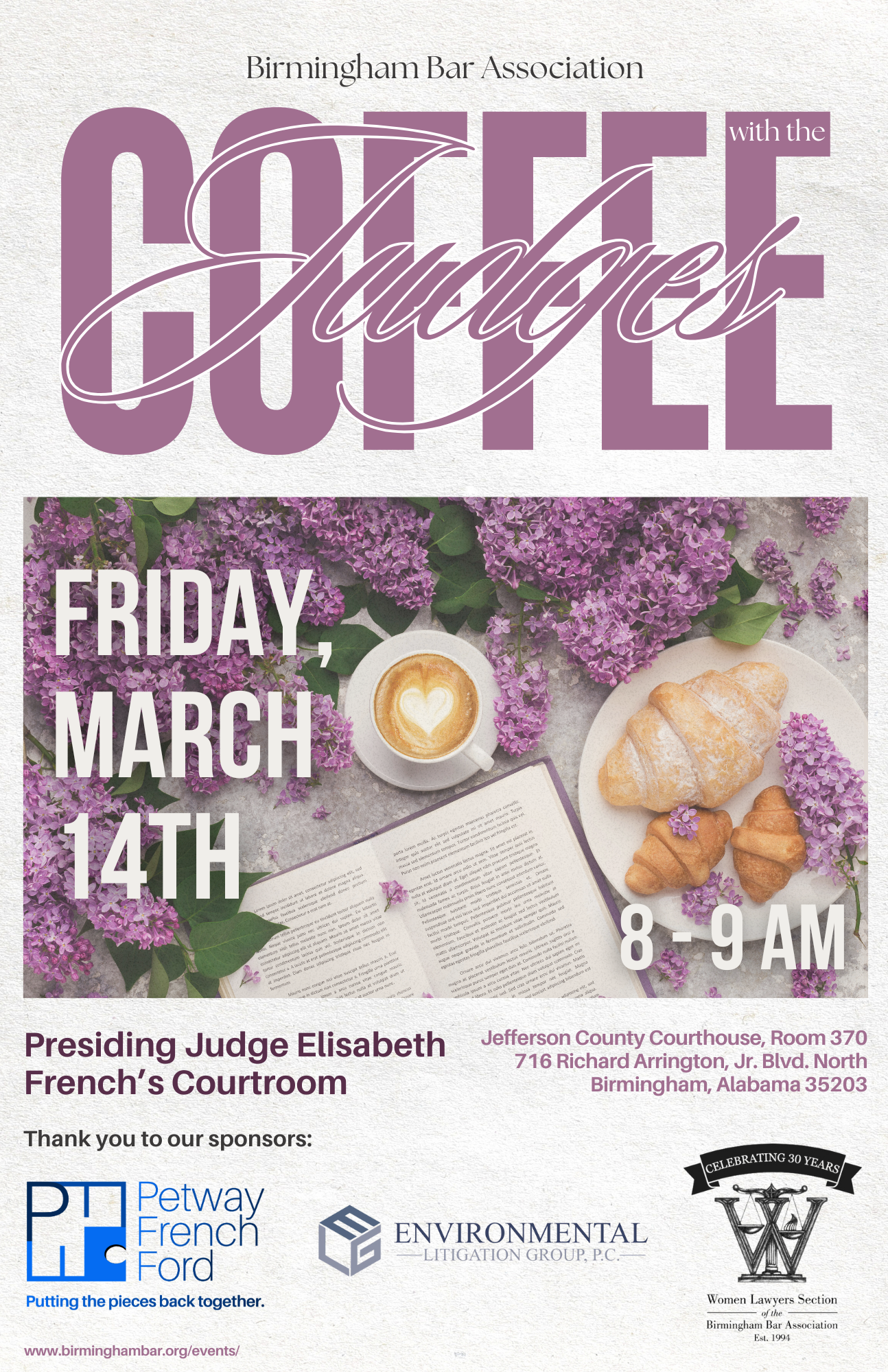 Thank you to our sponsors: BBA's Women Lawyers Section Petway, French & Ford, LLP Environmental Litigation Group, P.C. If you would like to sponsor upcoming events, please email Jim H. Wilson at jwilson@birminghambar.org