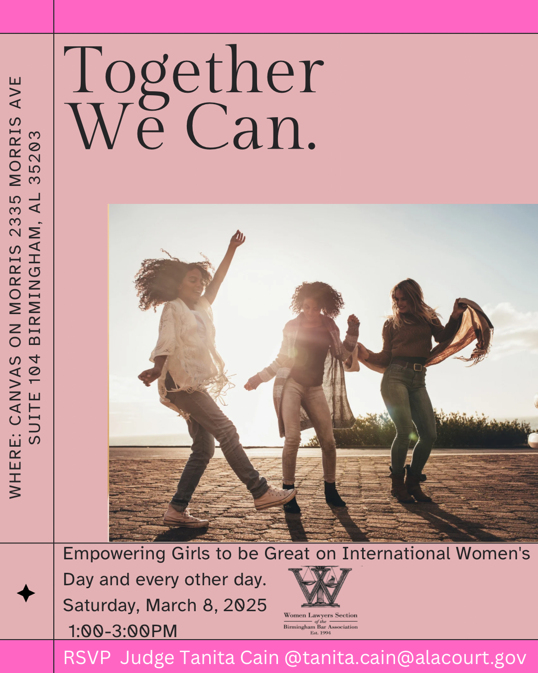 Join the Women Lawyers Section for International Women's Day! To RSVP, please contact Judge Tanita Cain at tanita.cain@alacourt.gov
